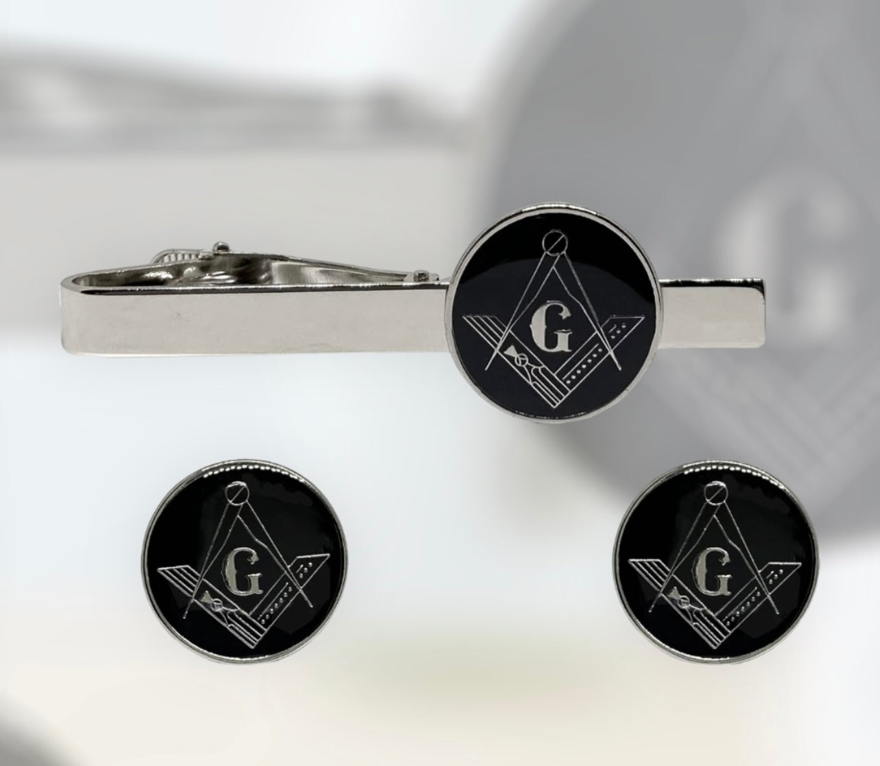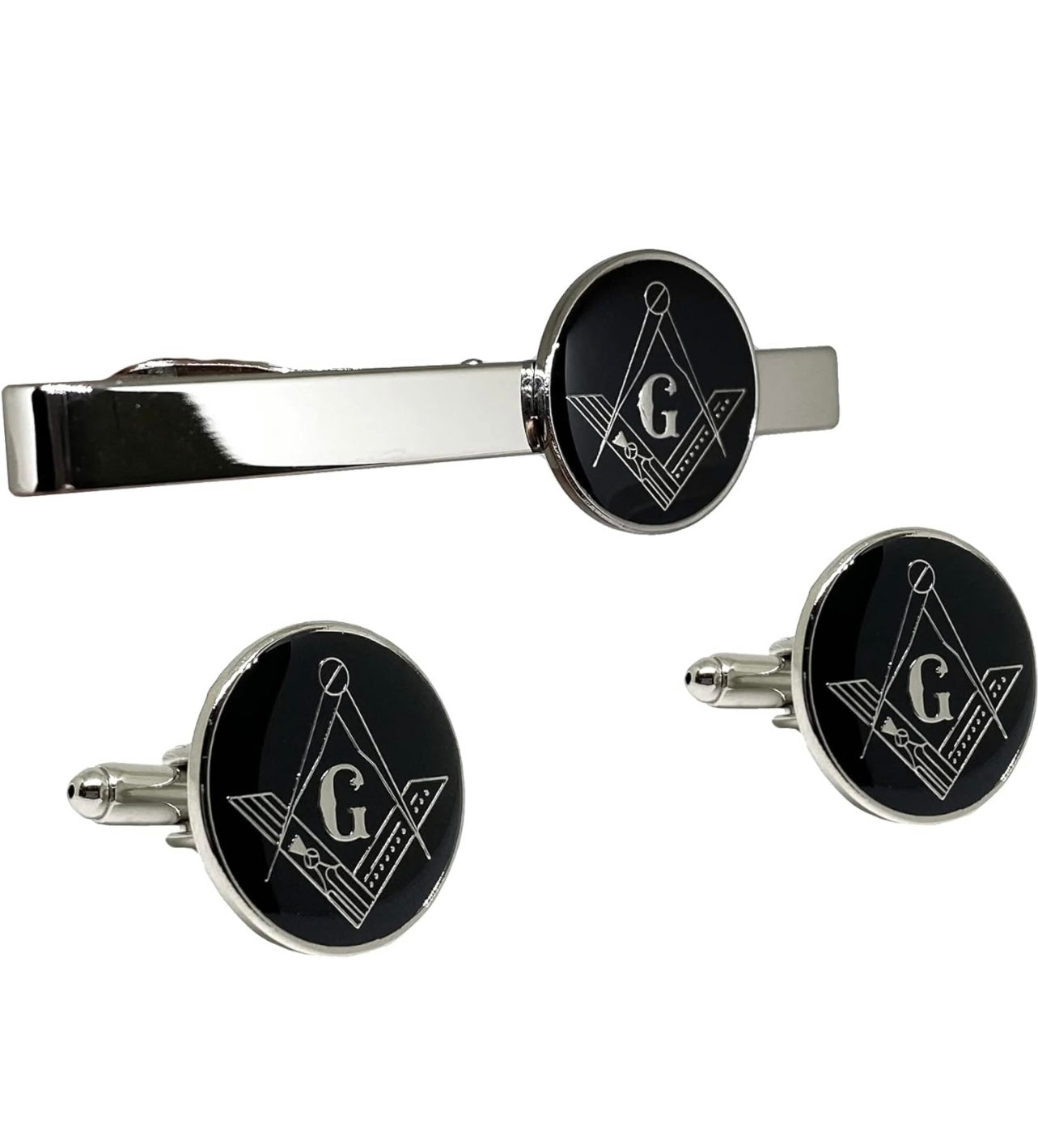 Masonic Freemason Square Compass Tie Clip Cufflinks TieBar Accessory Set