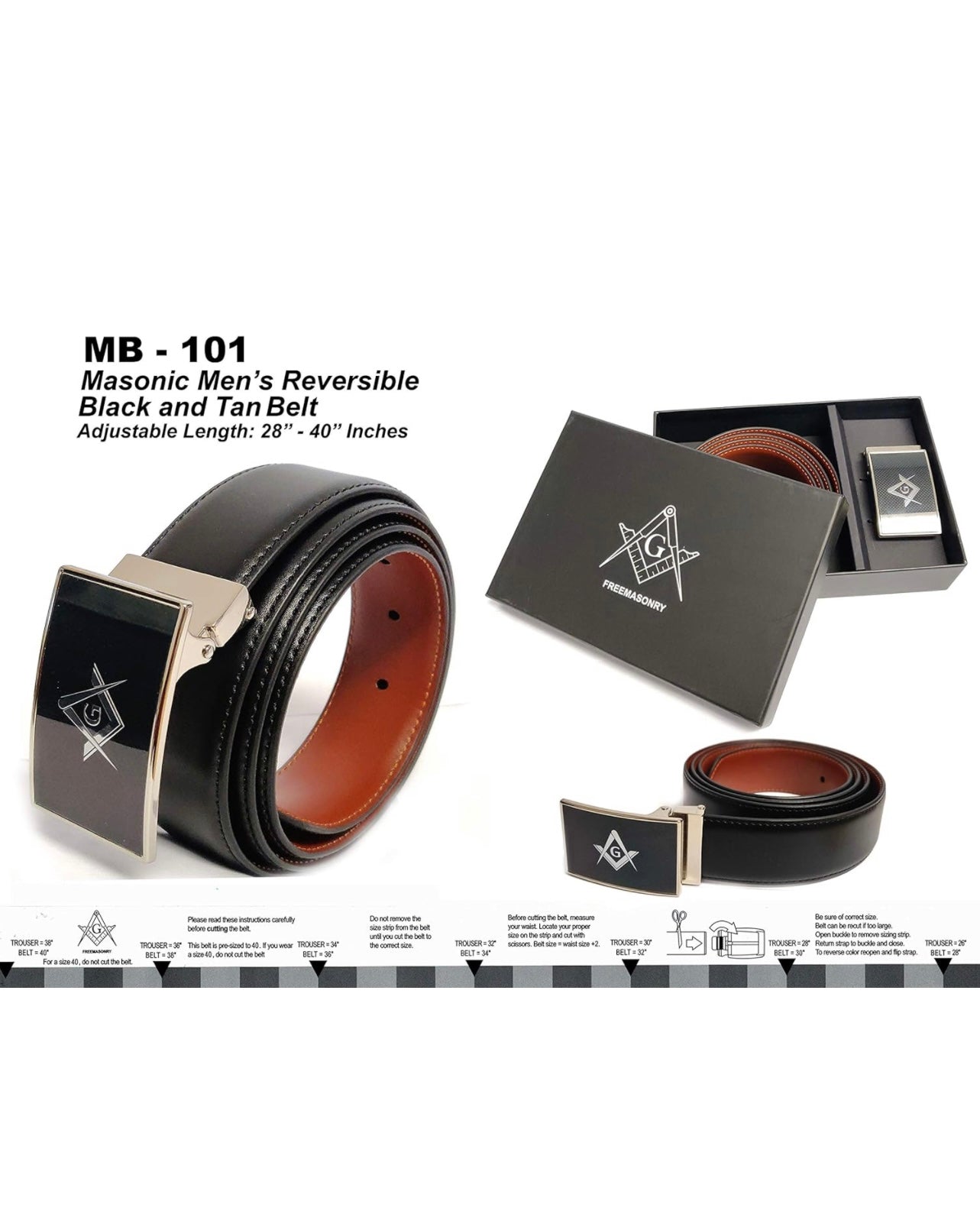 Premium Masonic Logo on the Buckle. Reversible and Durable Size: Adjustable by cutting the strap for fit Packing: Elegant gift-boxed Size: Adjustable by cutting the strap for fit