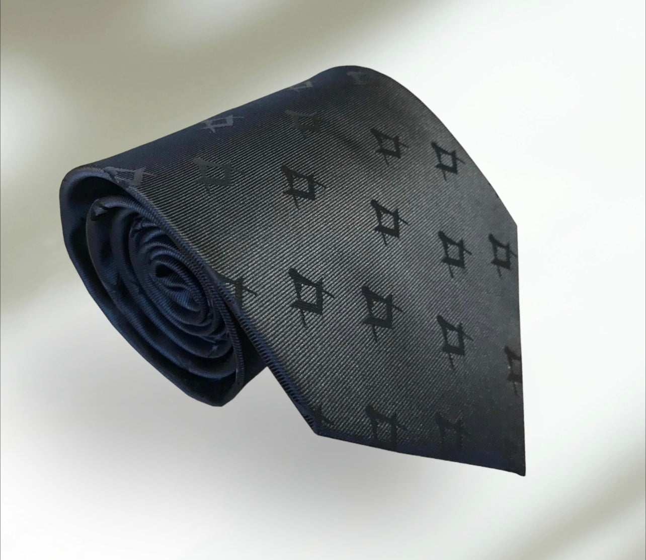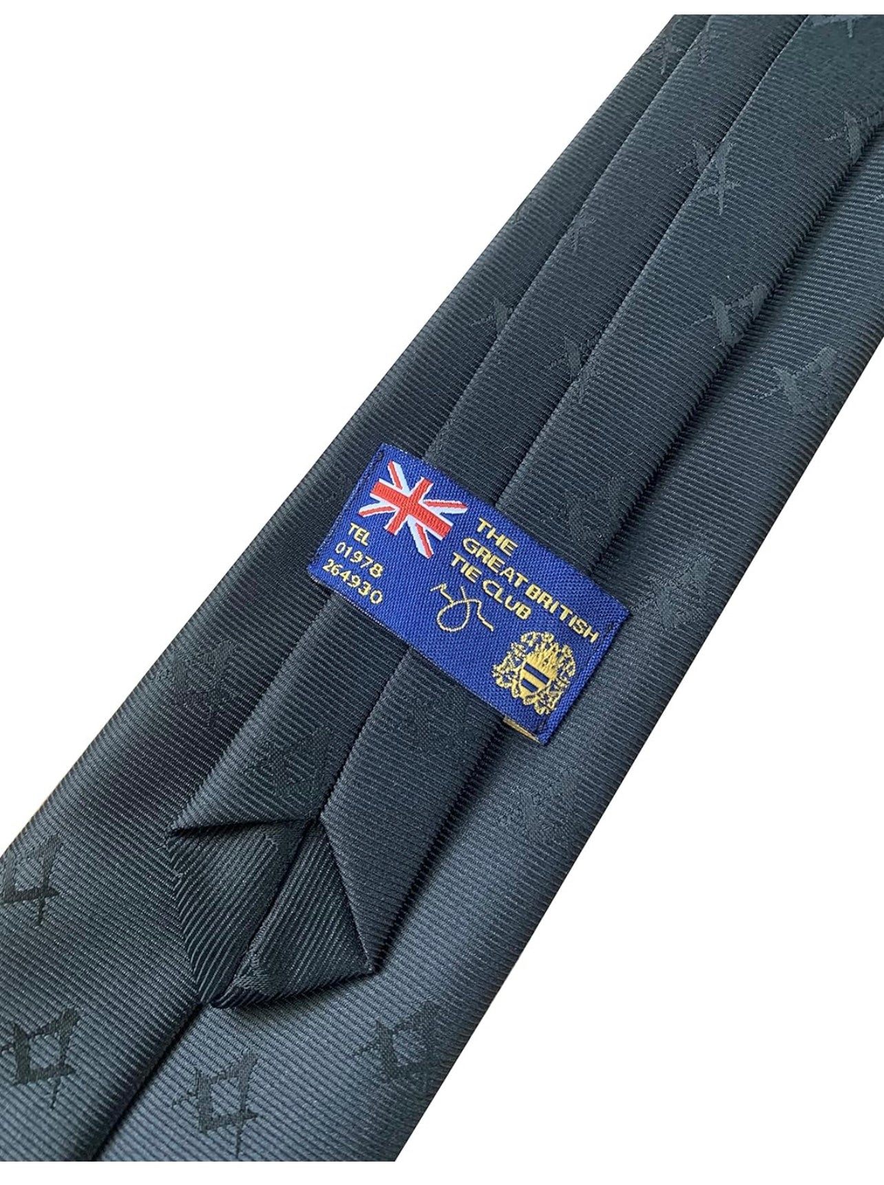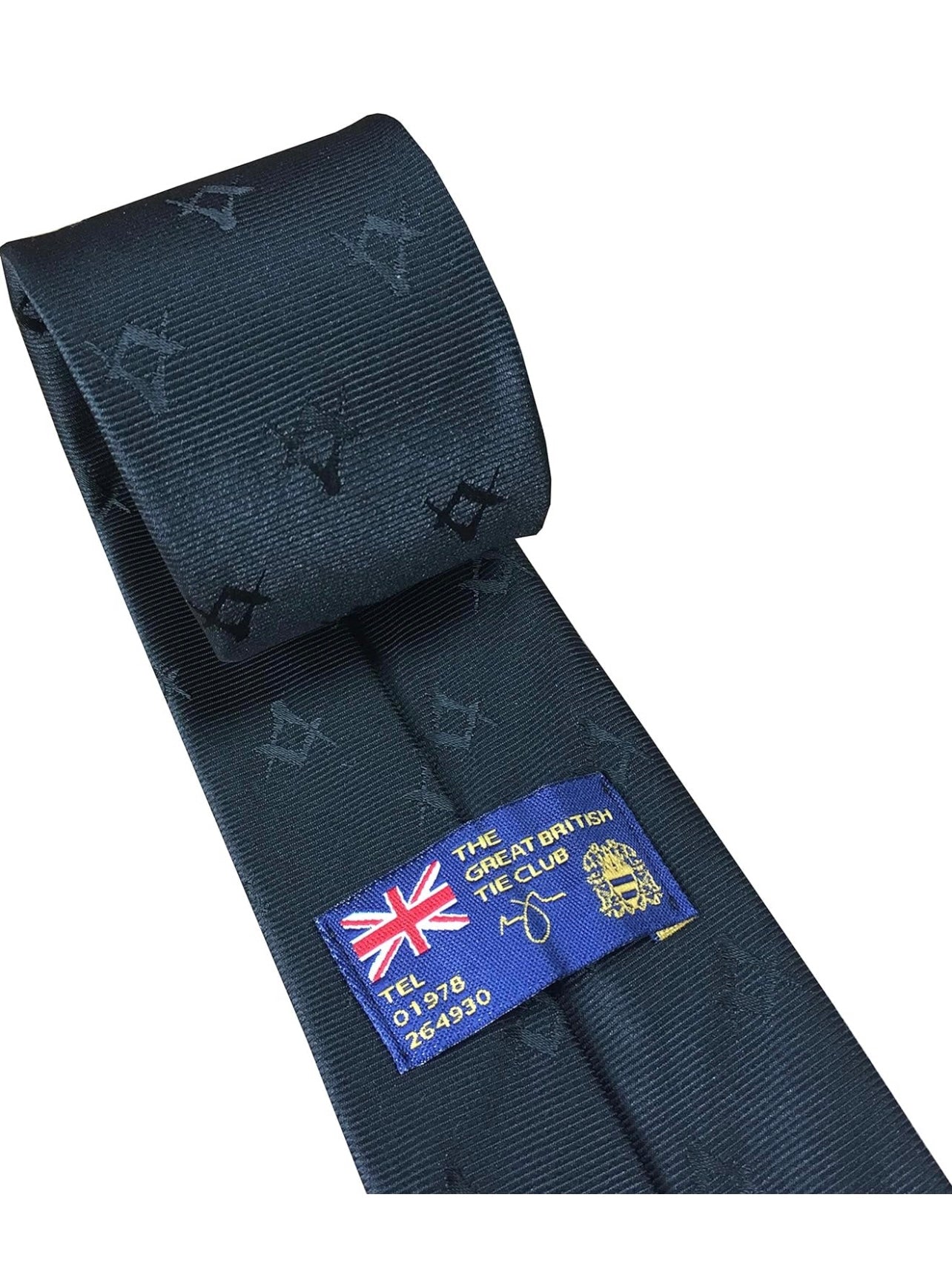 Men's high quality woven neck tie in black featuring the square and compass design of the Freemasons. 57 inches in length. Hand made in the United Kingdom by Great British Tie Club.